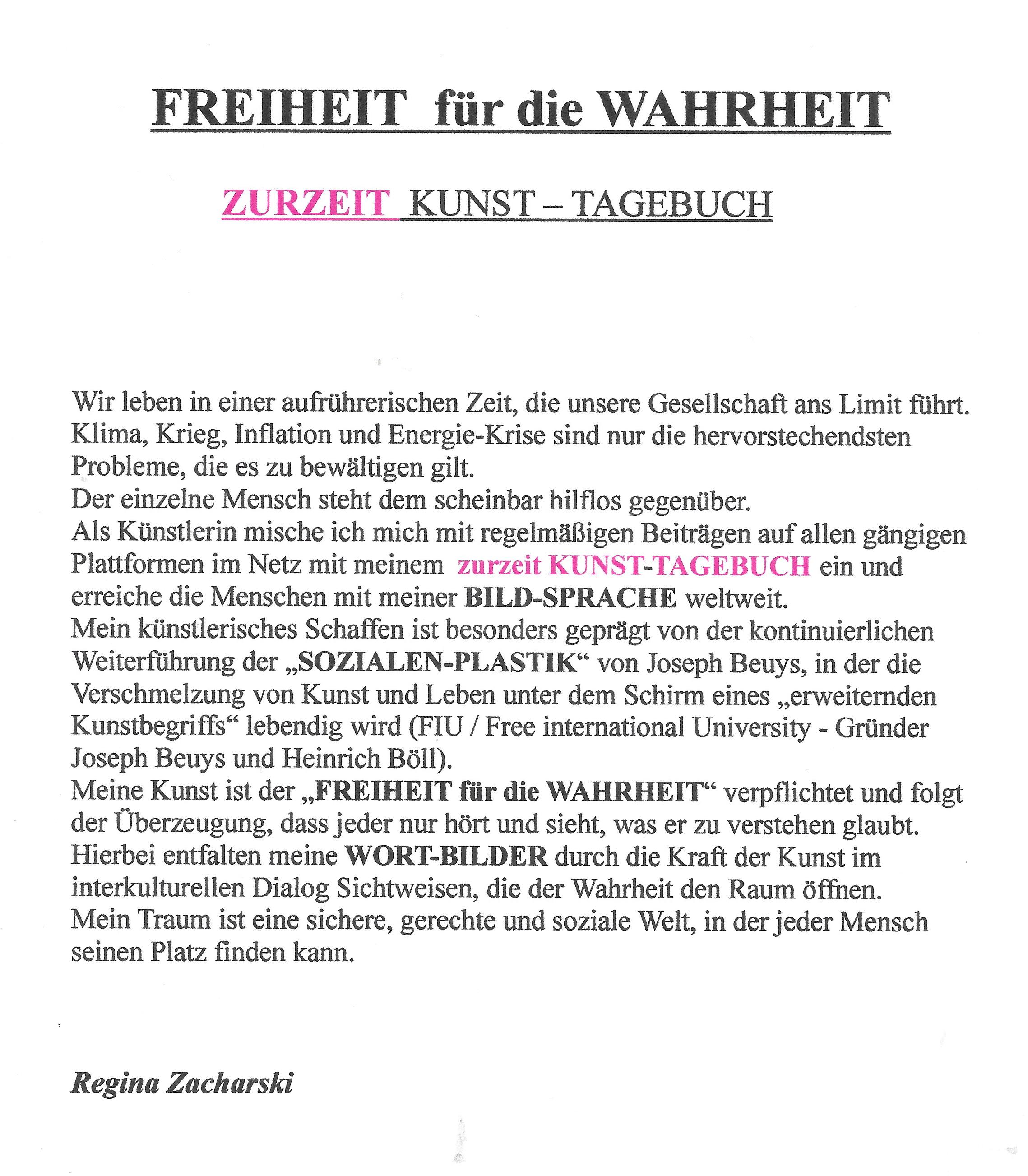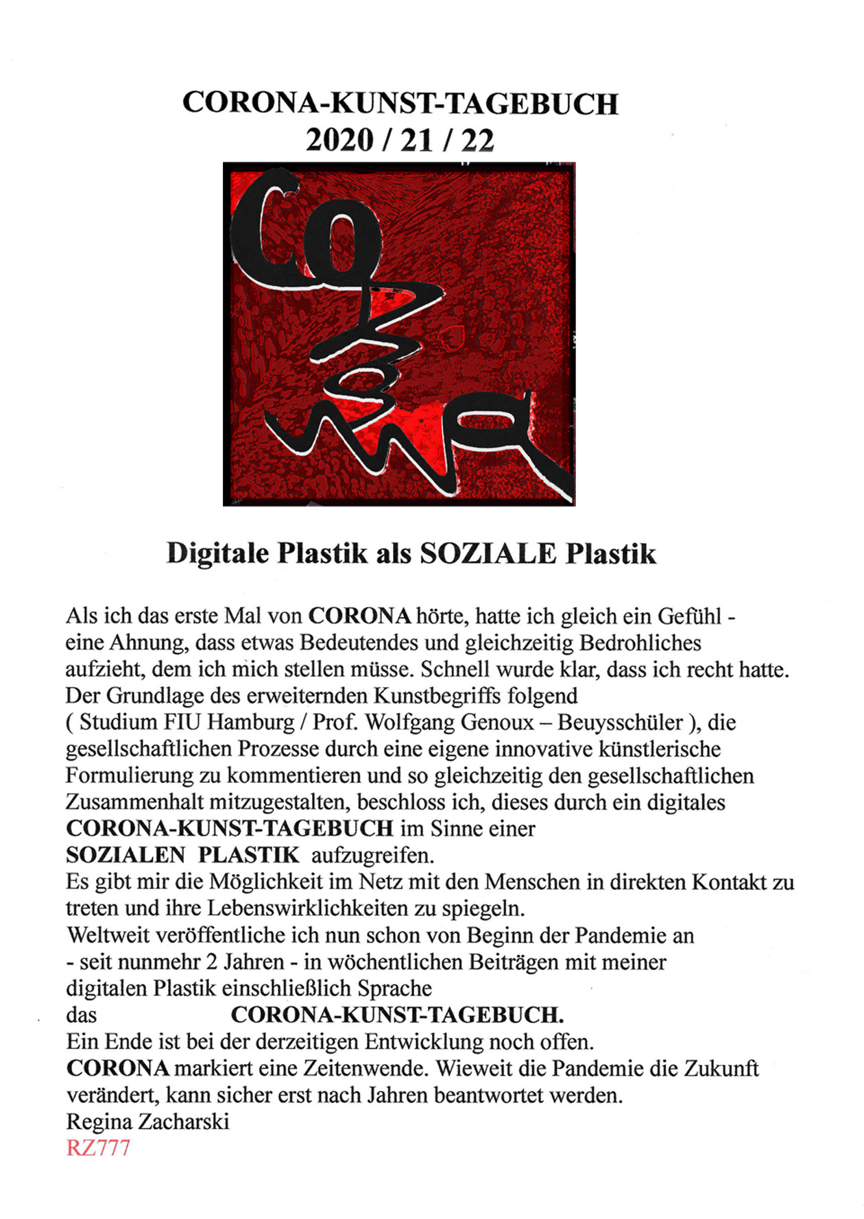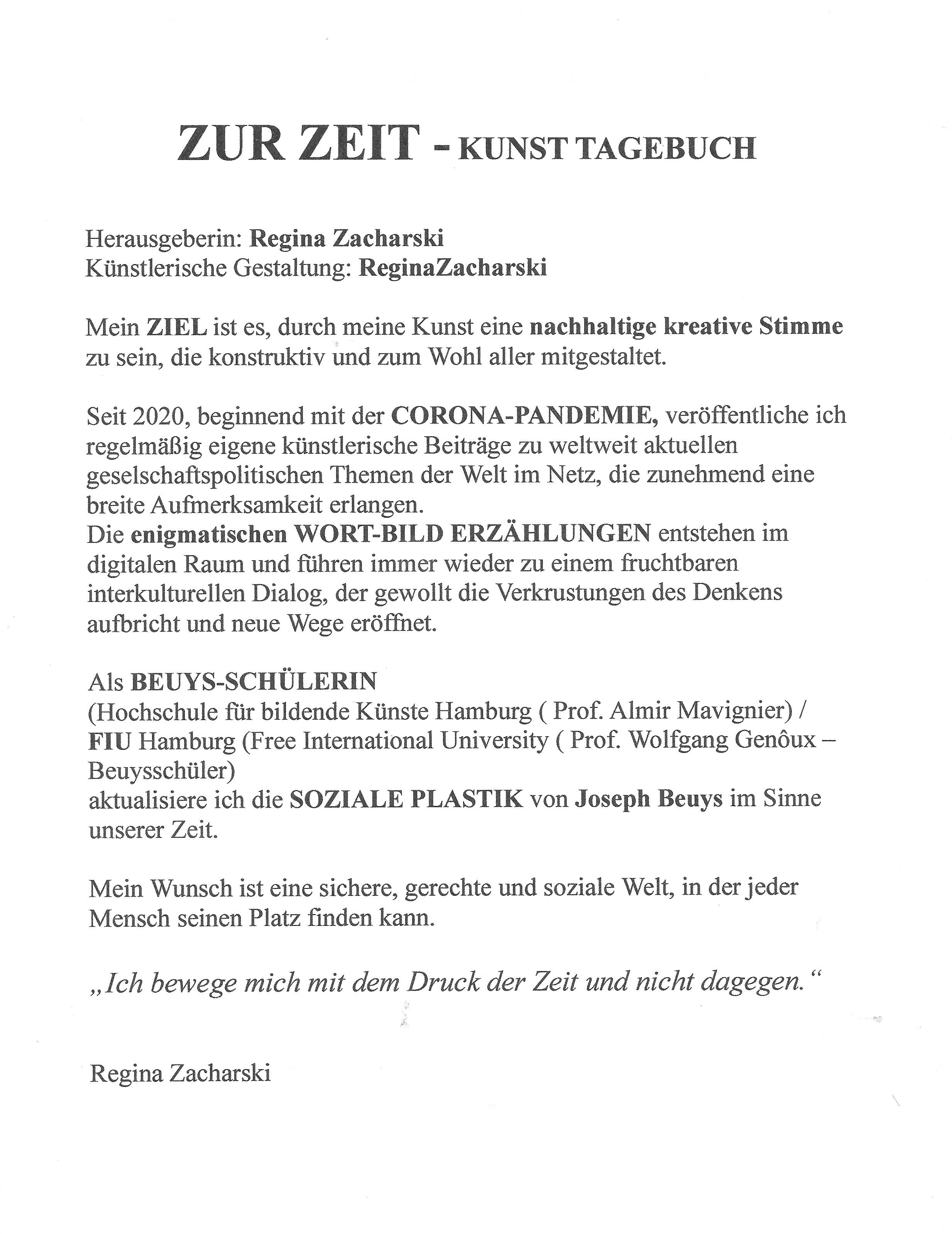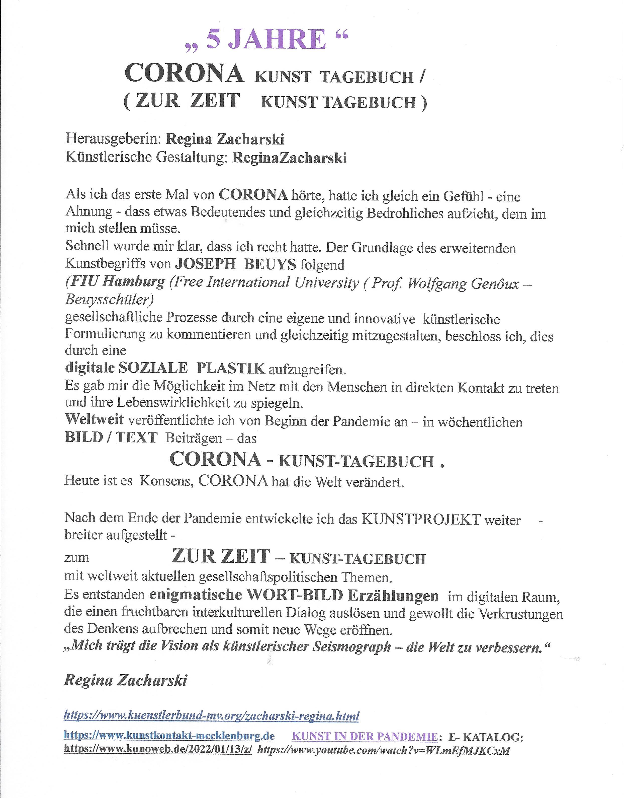 REGINA ZACHARSKI * „ 5 JAHRE “ CORONA KUNST TAGEBUCH / ( ZUR ZEIT KUNST TAGEBUCH )