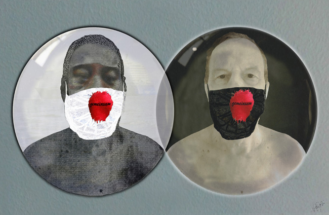 „Diese Arbeit ist entstanden aus dem erzwungenen Bewusstsein einer allgemeinen Bedrohung und der Solidarität mit den betroffenen Menschen. Ich hoffe und bin davon überzeugt, dass wir alle gemeinsam diese globale Herausforderung im Sinne eines friedlichen Miteinanders überwinden.