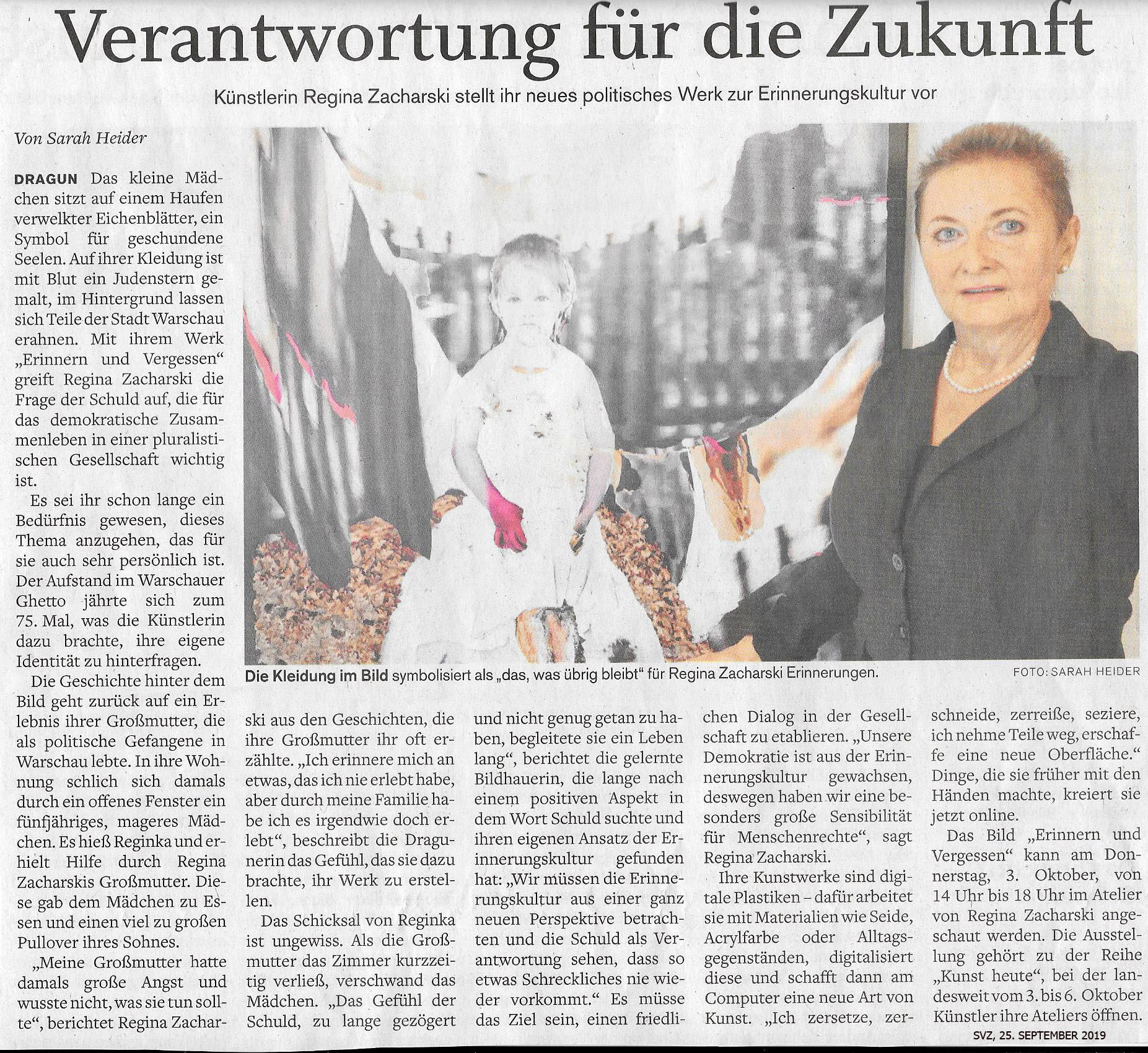 Verantwortung für die Zukunft - Künstlerin Regina Zacharski stellt ihr neues politisches Werk zur ERINNERUNGSKULTUR vor.
