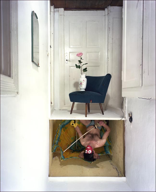 In staged photography, paintings, collages, sculptures, installations and performances, the artist Boris Duhm (* 1971) abducts the viewer into an imaginary wold of images. Hermetically terminated natural spaces turn to dramatic stages on which human mental deformations are performed. Like under a burning glass, different layers intensify into a distorted picture of society. Especially the media painting and photography are tools for the artist for creating collective places of memory. Hereby the „place“ shall be understood figuratively: it describes every viewer´s personal memories. In this way, the Boris crystallizes those (inner) landscapes from his personal biography, which have a social and finally political pertinence and he combines them to enigmatic and dream-like stagings.