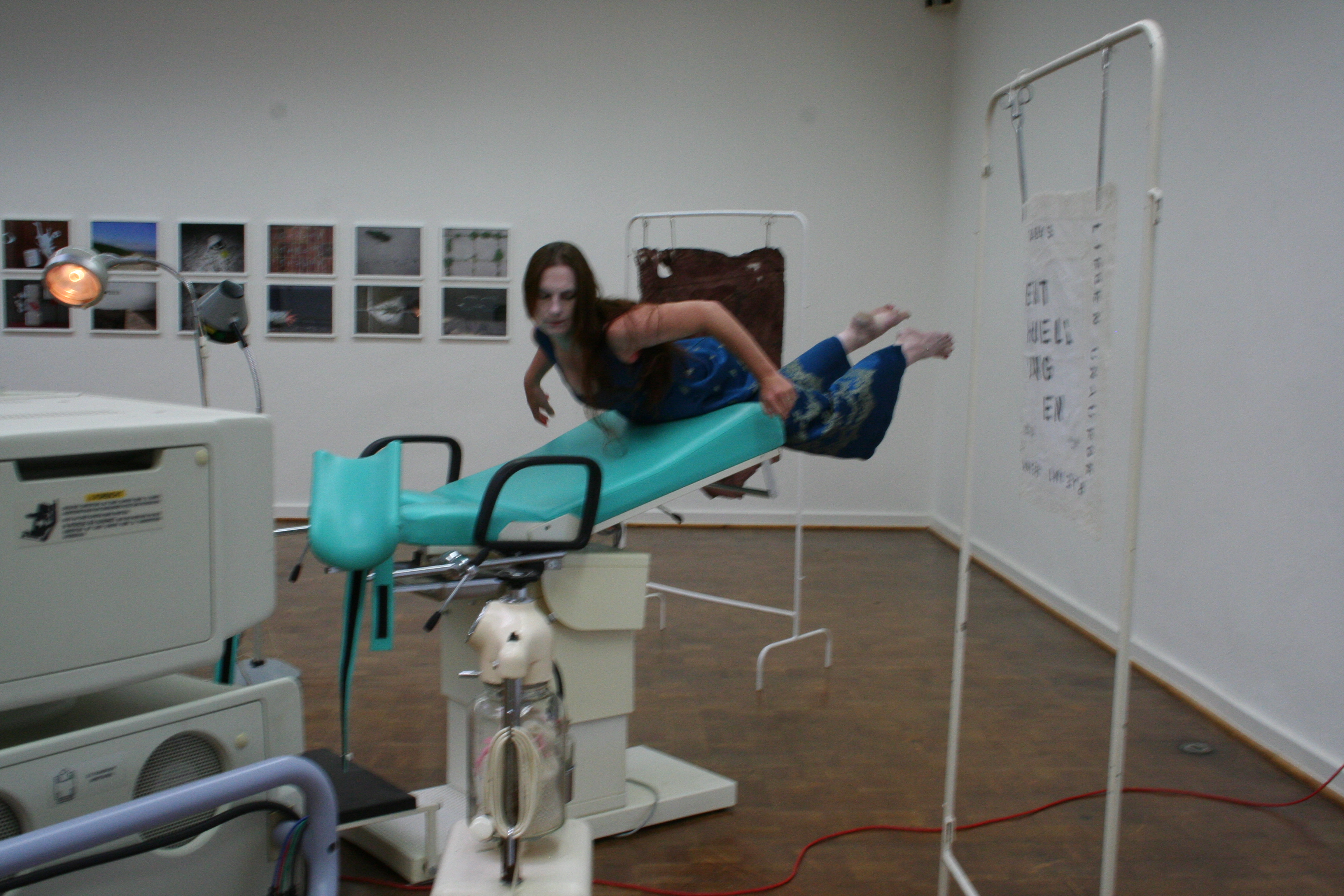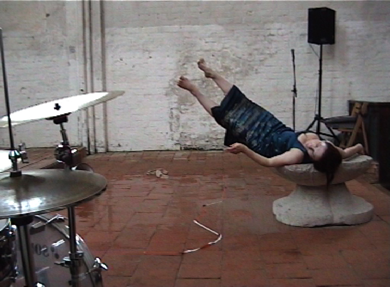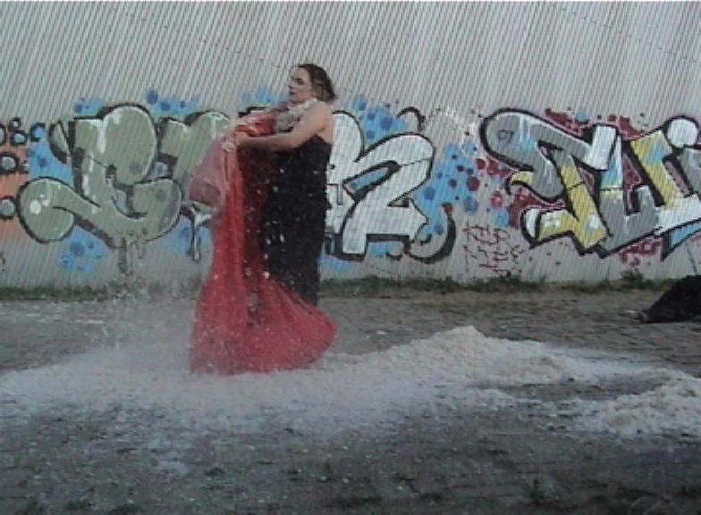 Orte und Gegenstände spielen bei meinen Performances eine Hauptrolle. Ich erschaffe ein "bewegtes Bild", das sich im Laufe der verstreichenden Minuten verändert. Da wird aus dem roten kompakten Federbettklumpen ein weißes diffuses Flockenfeld oder das blaue Brokatkleid zum Wischlappen...
