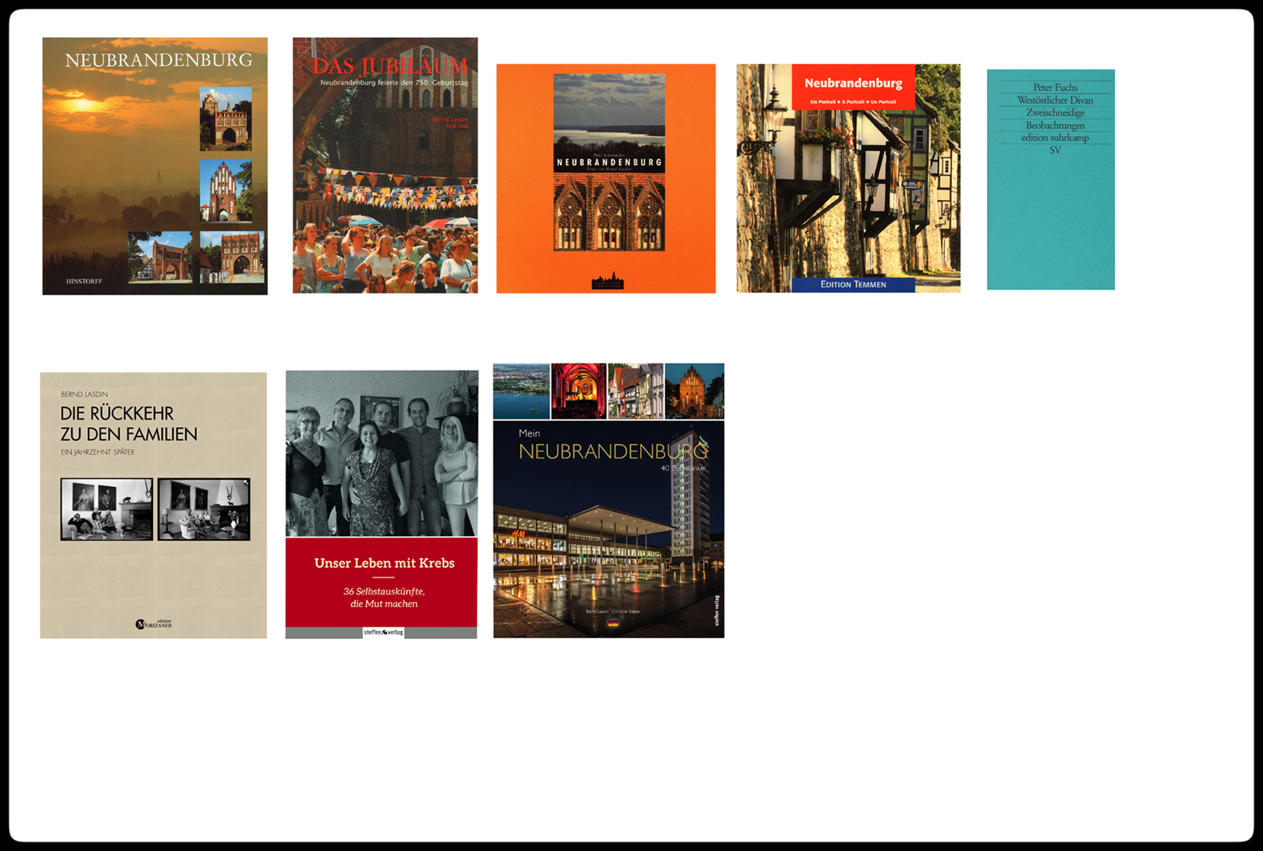Neubrandenburg, Damaskus (Syrien), Berlin, Helsinki (Finnland), Rostock, Dresden, Stettin (Polen), Potsdam, Petrosawodsk (Karelien/Russland), Leipzig, Sankt Petersburg (Russland), Charlott (North Carolina/USA), Stralsund, Kiel, Schwerin, Elkader (Iowa/USA), Milwaukee (Wisconsin/USA), Nischni Nowgorod (Russland)