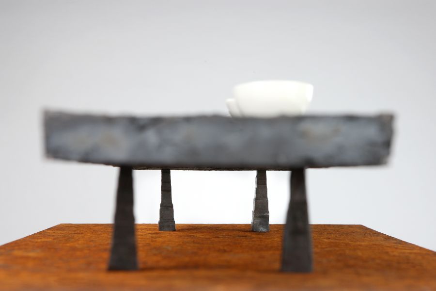 Ich arbeite mit einem grobkörnigen Ton, mit erhöhtem Schamottgehalt, um mehr Struktur, Plastizität und Tiefe als Ausdrucksmittel nutzen zu können. Meine Priorität in der Farbgebung liegt bei einem variantenreichen Schwarz in Kombination mit Raku und Schmiedearbeiten. Klarheit, die Reduzierung auf das Wesentliche, ist mein Leitfaden. Das Resultat dieser ungeschminkten, unbeschönigten Klarheit ist Beweggrund für die Farbwahl in meiner Arbeit.