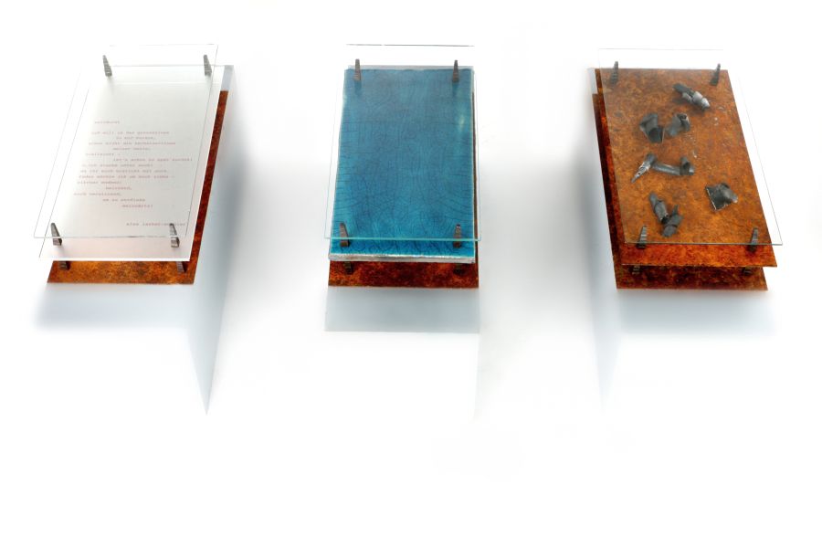 Auf die Größe und Beschaffenheit der Craquelé kann ich in gewissem Umfang Einfluss nehmen. Das Verfahren lässt sich einge-schränkt steuern. Das erfordert Erfahrung, Gefühl für das Verhalten der Werkstoffe und handwerkliches Geschick. In meinen Arbeiten ist mir das gezielte Einsetzen der Risse für planvolle Kontraste und Akzente wichtig. Mit der gezielten Konzentration oder Auflösung des Craqueles schaffe ich, gemäß dem Objektthema, Zonen der Ruhe oder Aufregung. Durch diesen gesteuerten Zufall ist jedes Objekt ein unverwechselbares Einzelstück.