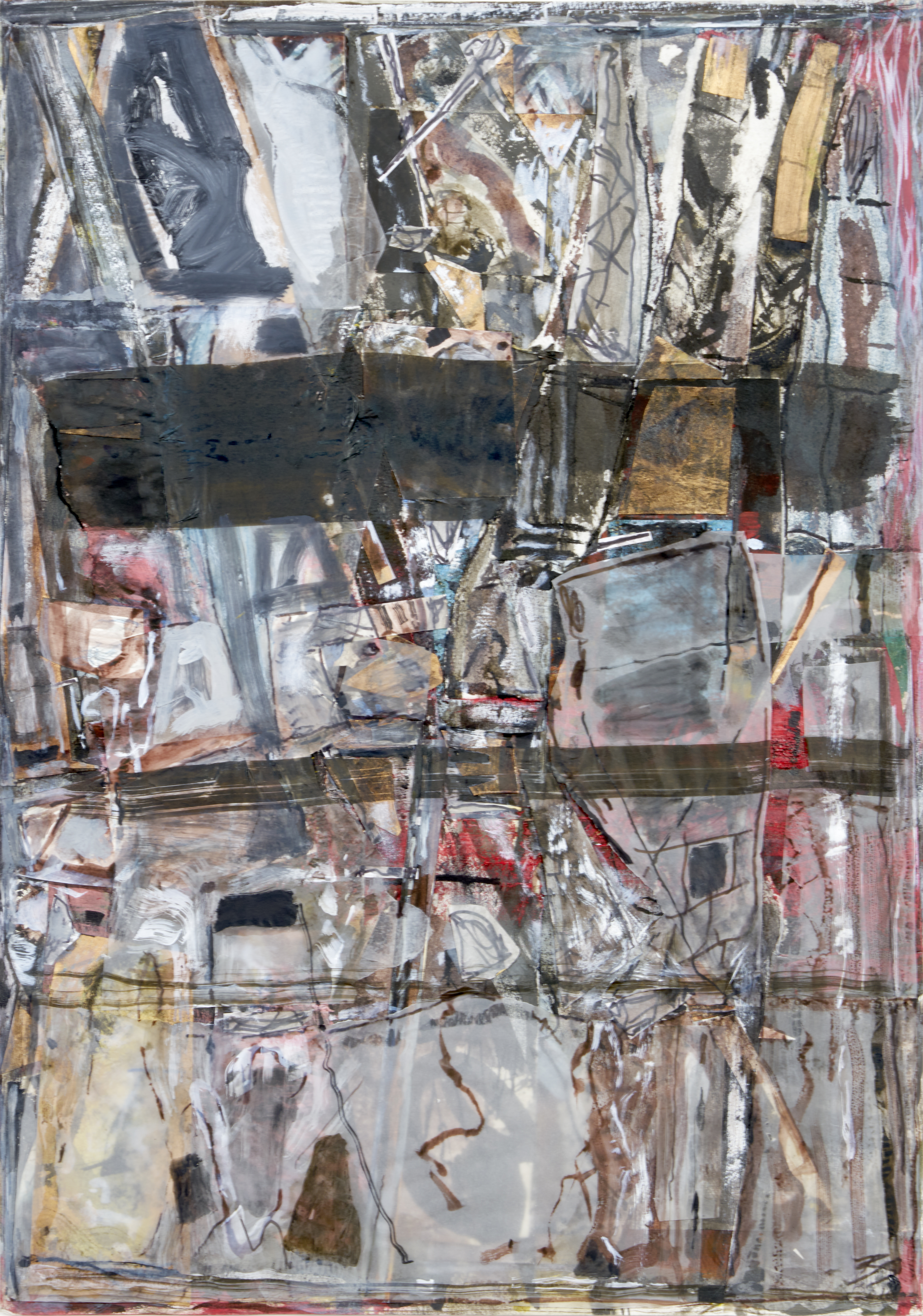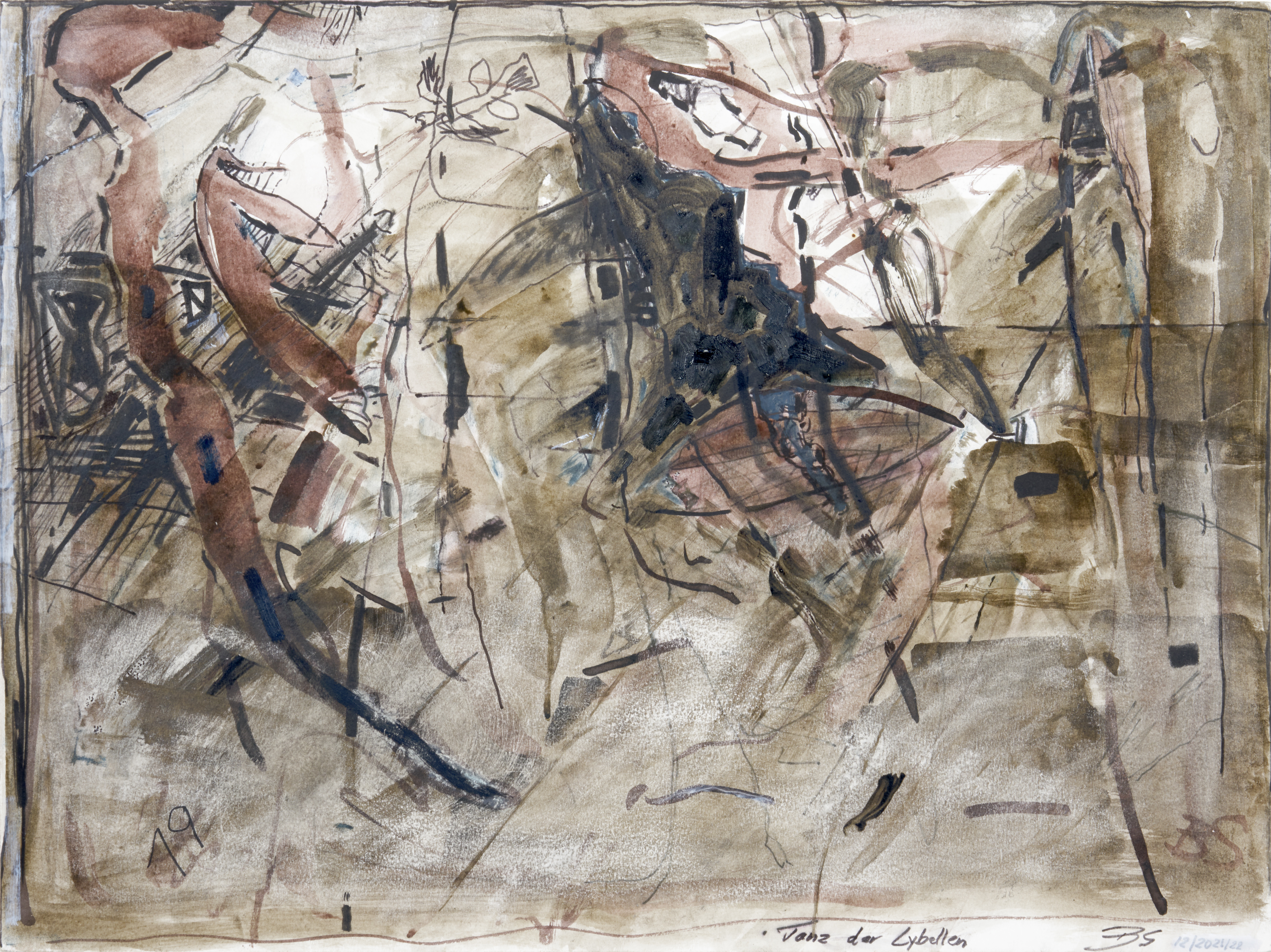 … das Eigene auf andere Weise zu sehen, wieder zum Leben zu erwecken und dann mit dem Kanon neuer Werke in einen Dialog zu treten, dieses gelingt Schrock mit der Benutzung vorhandener, zugeschnittener Fragmente. Dabei unterbricht er häufig die Arbeit an einem Bild, holt sich ein angefangenes, arbeitet darin weiter, lässt sich von den verhandenen Chiffren inspirieren, arbeitet um, stellt beiseite und hilft Stufe für Stufe seinen Innenbildern zu immer neuen Durchbrüchen. An Stelle der harten Form trifft das Fließende und Offene, das Gefühlte, dabei keinesfalls Willkürliche, das Werk als Geschehnis, eigentlich die Erschaffung des Kunstwerks im Betrachter.