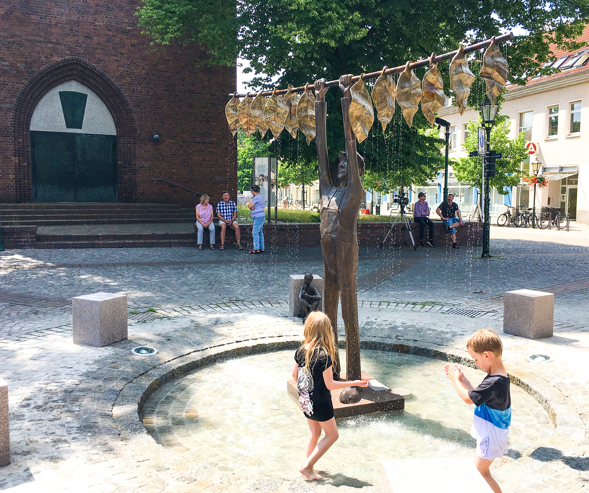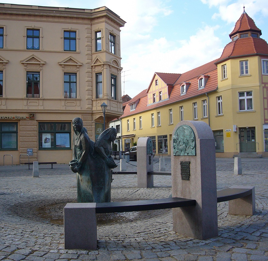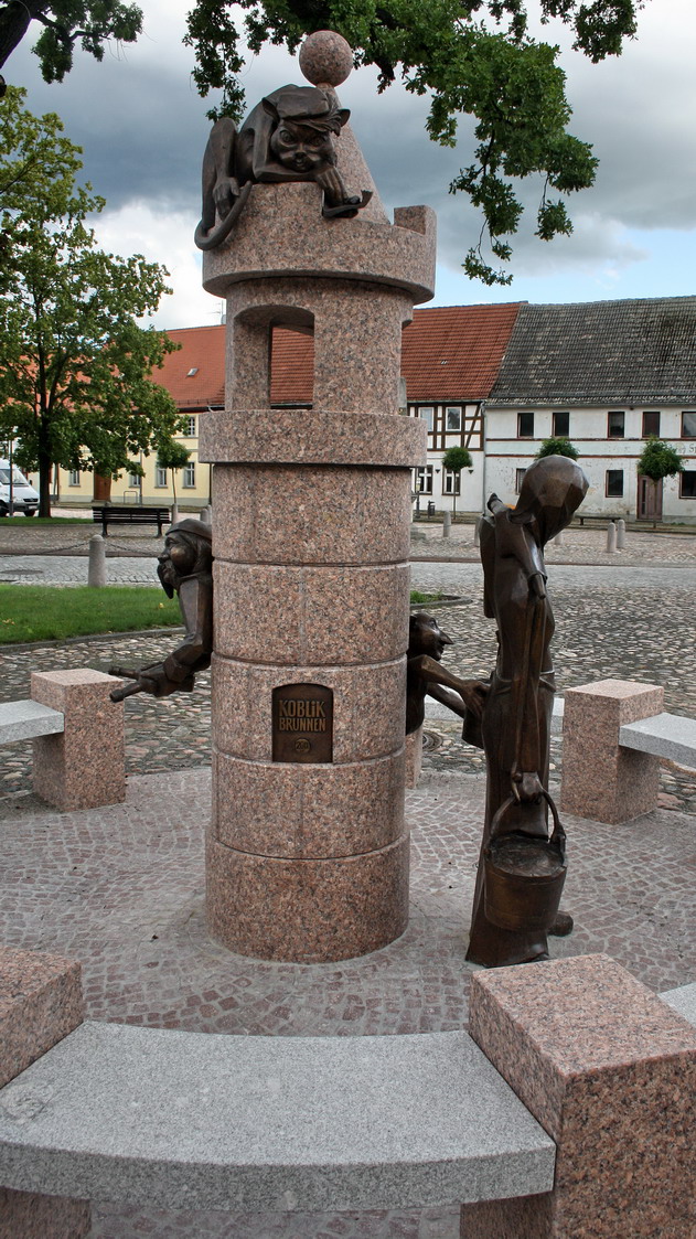 „Koblik-Brunnen“ Bronzeguß, Granit, D. 4,50 m / H. 3,00 m, Marktplatz Uebigau (2011) -