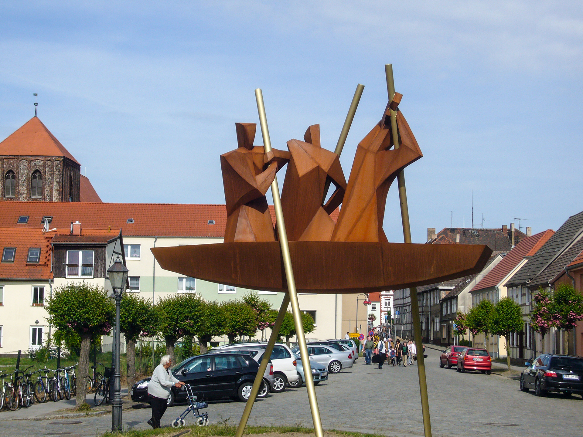 „Fuss-Schiffer“ Corten-Stahl / Stahlrohr, H. 4,80 m / B. 3,50 m / T. 1,15 m, Wusterhausen (2009) -