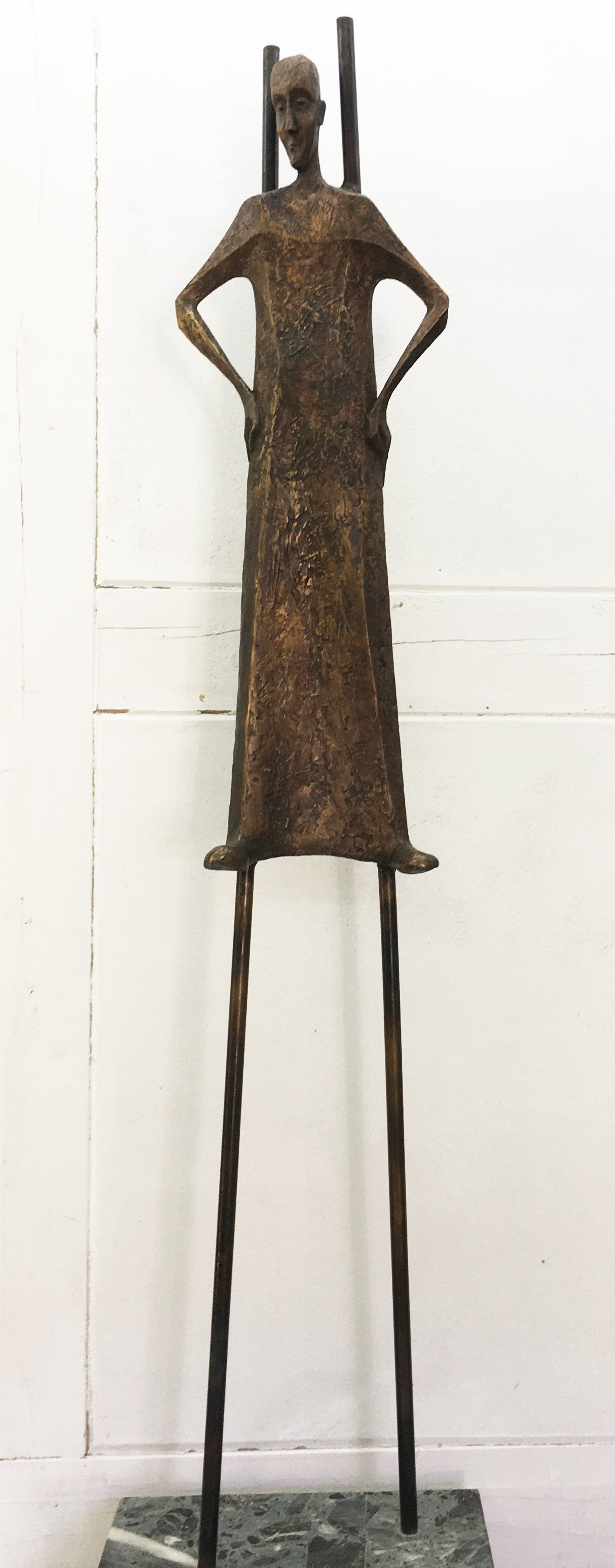 „Stelzenläufer“ Bronze /Stahlrohr, H.180 x B.34 x T.18cm, 2025 -
